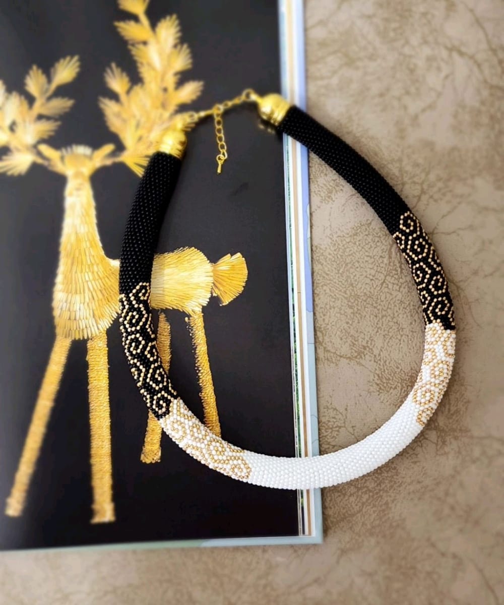 Tourniquet necklace made of Czech beads Clasp carabiner with an extension chain This will allow you to adjust the necklace on any neck circumference Length of the necklace 42cm Width of the necklace 1.5 cm This jewelry will always complement and decorate your image