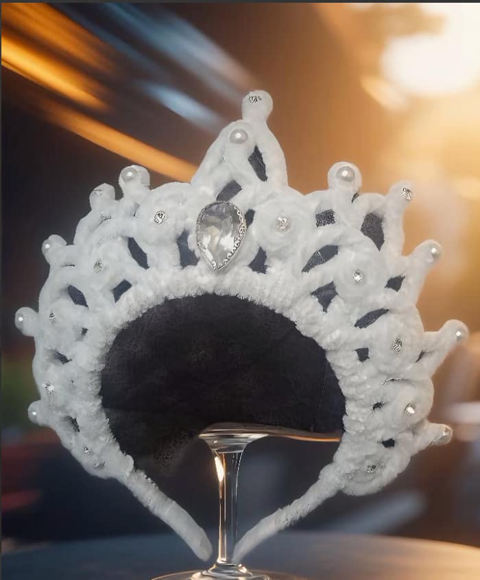 Snow Maiden kokoshnik headband for girls – a white “pearl” crown inspired by the classic Snegurochka look.