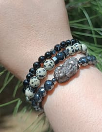 ✨Пара браслетов из натуральных камней бычьего глаза и агата с бусиной Дзи «Кубера»