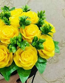 “Sizniki — sizga xos” tamoyili bilan tayyorlanadigan bu kompozitsiya ism, laqab yoki harflar ko‘rinishida joylashtirilgan qizil sovun atirgullardan iborat. Suratdagi namunada “Jannatim” g‘oyasiga mos, yorqin va e’tiborni tortuvchi dizayn ishlangan. Har bir gul qo‘l mehnati bilan yasaladi; gulbarglarning spiral tuzilishi jonli atirgul taassurotini beradi. Yengil aroma xonaga yoqimli muhit bag‘ishlaydi, ranglar oqarmaydi, shakli uzoq muddat saqlanadi. Ishlatilgan materiallar allergiyasiz, shu sabab uy, ofis, tadbir va fotosessiyalar uchun ham xavfsiz.