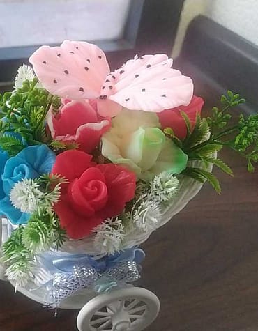 Keng pushti savatchaga joylashtirilgan ko‘p dona sovundan lola kompozitsiyasi — onajonlar, ustozlar va yaqinlar uchun katta hajmli, ko‘zni quvontiradigan nafis sovg‘a. Har bir lola qo‘l bilan ishlangan bo‘lib, gulbarglarning silliq tuzilishi haqiqiy lola ko‘rinishini beradi. Hidini yillar davomida saqlaydi, ranglari oqarmaydi, materiallari allergiyasiz. Savatcha ustiga qo‘yilgan yog‘och yozuvni siz xohlagan matnga moslaymiz: “Jannatim — onam”, “Tabriklayman”, “Sevgi” va boshqalar. Kompozitsiya uy interyerida, tantanali dasturxon chetida, lobby yoki resepsion stolida juda chiroyli aks etadi; parvarishi oddiy — vaqti-vaqti bilan changini artish kifoya. Ranglar palitrasi (turli pushti ohanglar, oq, kremsimon) va lola sonini didingizga ko‘ra belgilaymiz; qo‘shimcha ravishda kichik xo‘rozqandlar, lenta, kartochka va bejirim qo‘ng‘iz bezaklari qo‘shib beramiz. Narx buyurtma murakkabligi va lola soniga bog‘liq, o‘rtacha 100 000 so‘mdan boshlanadi. Bajarilish muddati 1–14 kun (hajm va detalga qarab). Har bir buyurtma Munira Boymuhammedova tomonidan sifat nazorati bilan tayyorlanadi. 📲 Buyurtma va maslahat: +998 99 398 26 69 (KB-Store). Rang, yozuv va o‘lchamni ayting — biz orzungizdagi savatni aynan siz uchun yasaymiz.