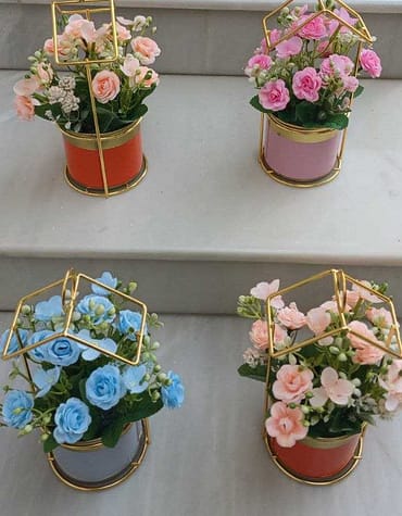 Geometrik stendli sun’iy gul — pastel buket dekor